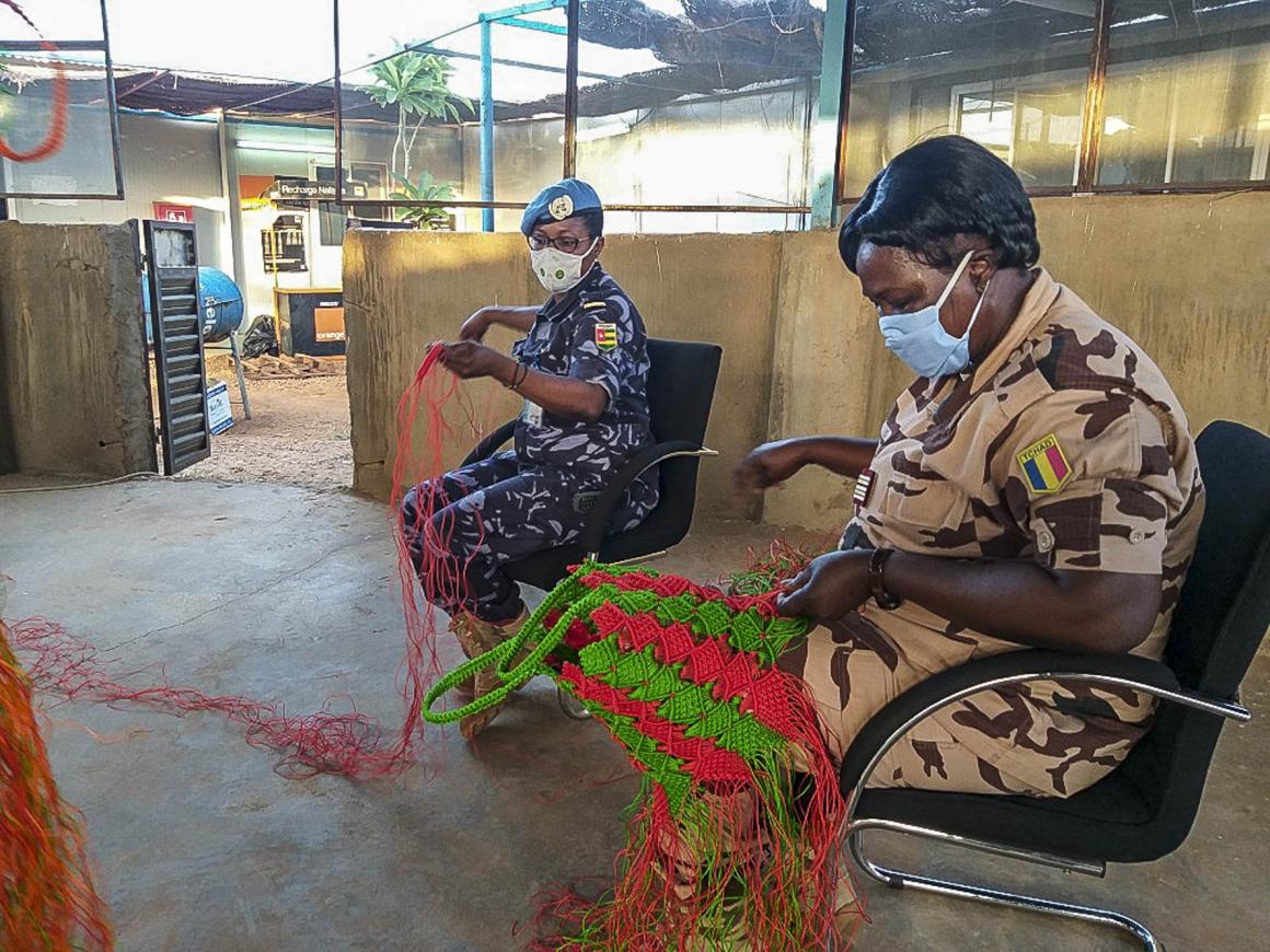 A few months after his arrival in Gao, the Covid-19 pandemic hit Mali. During the lockdown, outside of her working hours, Chief Warrant Officer KOHOU was affected by the distress and loneliness of her colleagues. With the planetary closure of all borders, some saw their hope of ever re-joining their loved ones disappear. She decided to go door-to-door to offer to those who wanted to learn how to weave reusable bags. "I didn't want to throw away plastic bags every time I went shopping," says the peacekeeper, whose generosity is second to none. A successful bet for Chief Warrant Officer KOHOU because, in a short time, Gao camp was taken over by weaving fever, a way to cultivate the resilience of peacekeepers during a trying time marked by the Covid-19 pandemic. First individually to respect the distancing measures and then in small groups, civilians and uniformed personnel weaved bags. "My idea was to strengthen solidarity and friendship between colleagues who were away from home and their loved ones during this difficult time. There was, however, one essential rule to follow: woven bags should under no circumstances be sold. They had to be for oneself or offered among colleagues and family members," she recalls. A pedagogue, she wanted "not only to create bonds of affection but also to privilege learning," she said.