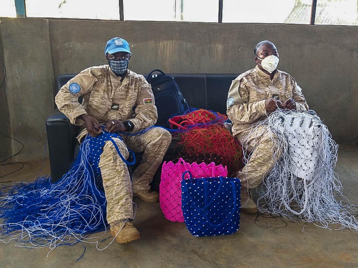 Today, the satisfaction of Chief Warrant Officer Jeanne d'Arc KOHOU is indeed to know that she has transmitted something as a peacekeeper. "I always tell women that working is fulfillment. One of the trained colleagues told me that weaving is a therapy for her because it allows her to stop thinking about worries. What gives me even more satisfaction is that these bags feed a lot of people, send children to school and care for them. To go further, the web we have woven from the MINUSMA camp in Gao allowed each trained person to take a piece of Mali with them at the end of their mission. Seeing a single nylon thread will definitely send them back to Gao."