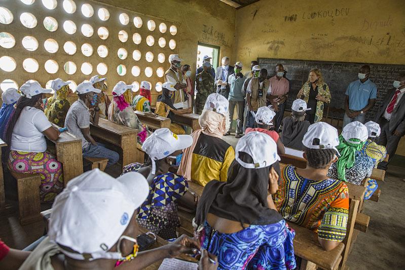 The Deputy Representative of the UN Secretary-General in the Central African Republic, Lizbeth Cullity, met with 80 beneficiaries of MINUSCA’s Community Violence Reduction (CVR) Programme, at two training centres – the Bon…