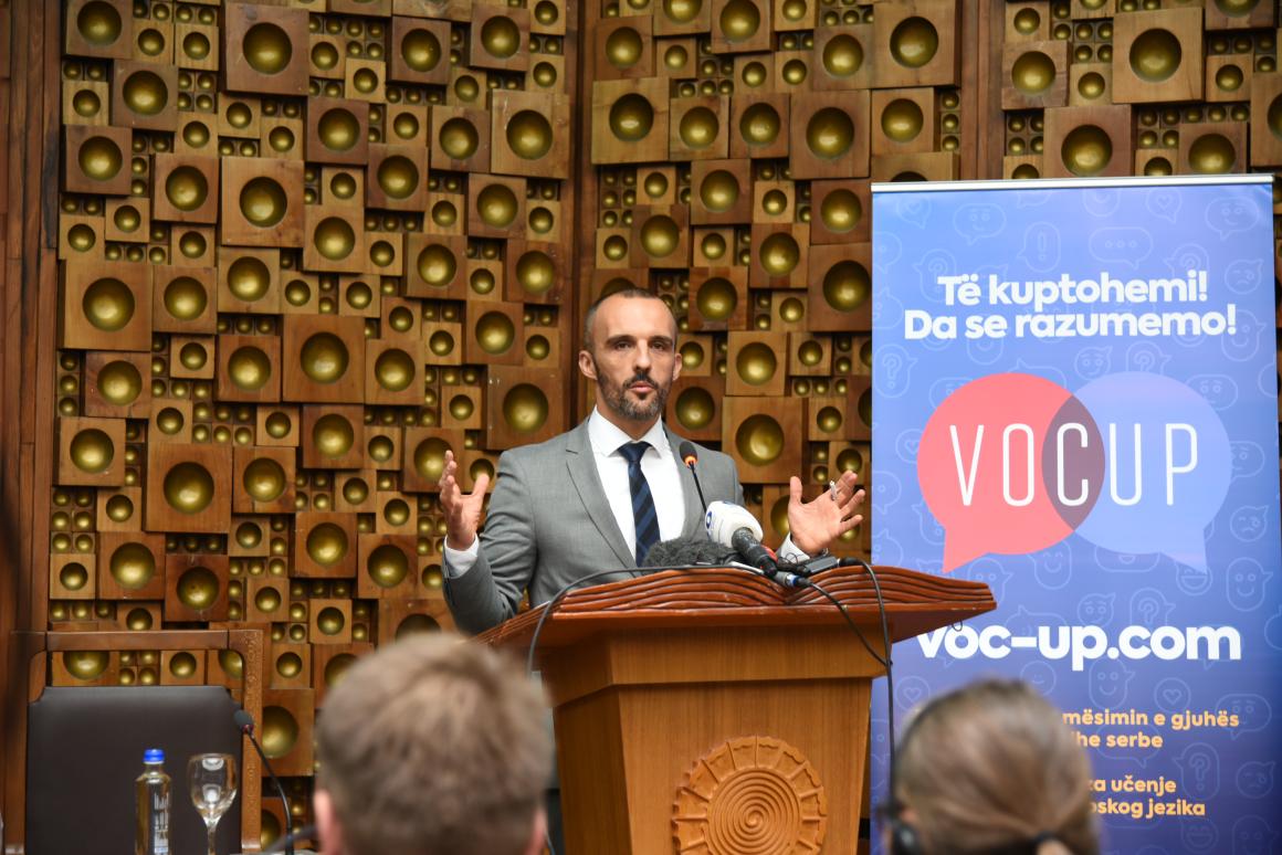 The rollout of VocUp is part of UNMIK’s strategy to foster social cohesion and bridge these divides by promoting multilingualism. As part of this initiative to make language-learning easier and more accessible, IOM with support from UNMIK, also developed the largest Albanian-Serbian and Serbian-Albanian dictionary ever created, which is now available both online and in print with more than 80,000 words across languages.
