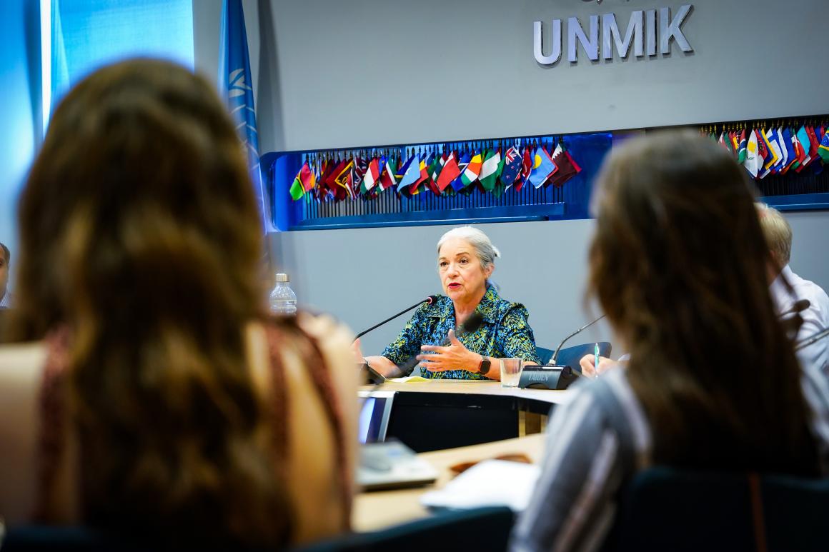Twenty-three political science students from the University of North Carolina had the chance to ask unfiltered questions about the practical role of UNMIK during a roundtable today. The undergraduate students, whose programme has a specific focus on the role of international organisations in post-conflict peace- and institution-building, visited UNMIK Headquarters in Pristina as part of a study tour of Bosnia and Herzegovina and Kosovo, where they received briefings on areas of the mission’s focus, including human rights, youth, peace and security and community support.