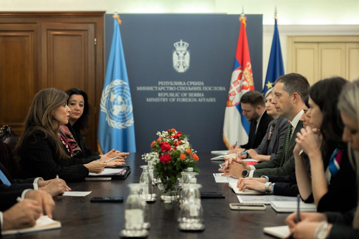 During her visit, SRSG Ziadeh met with Prime Minister Miloš Vučević, President of the National Assembly Ana Brnabić, Foreign Minister Marko Đurić, and the Director of the Office for Kosovo Petar Petković.