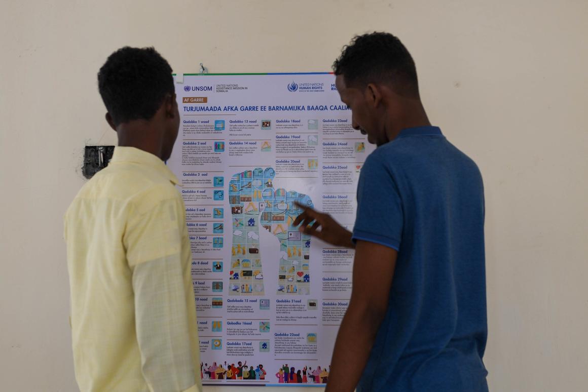 Supported by the United Nations Assistance Mission for Somalia (UNSOM) in collaboration with the National Museum of Somalia, the initiative is simple yet innovative: the UDHR translated into more languages spoken in Somalia - Maadoonte, Chimini, Gare, Jiido, Baajuni, Dabaare and Af Maay.