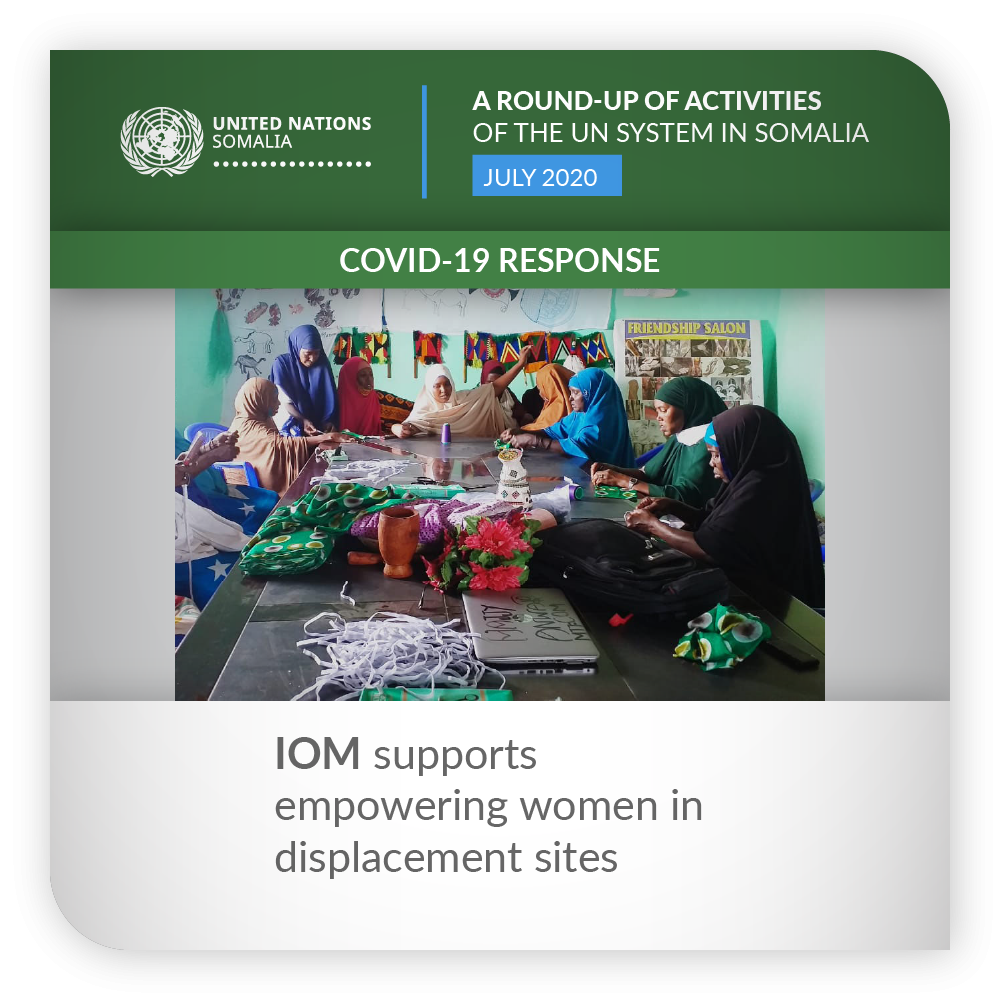 ![]() | COVID-19 response | IOM supports empowering women in displacement sites Under the Women Participation Project (WPP), IOM is empowering groups of women living in displacement sites in Doolow, in southern Somalia, to take the lead and keep their community safe from COVID-19. In July, IOM trained and donated sewing materials to women's committees and groups to design face masks for the community. Since the first COVID-19 case was confirmed in Somalia last March, IOM has run community engagement activities to contain the coronavirus in displacement sites around the country. Internally displaced people are at high risk due to the often crowded and unhygienic conditions they live in, where access to clean water continues to be a luxury for many. | |