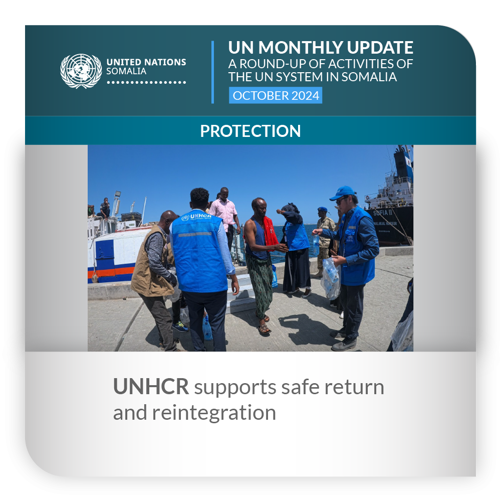 ![]() | Protection | UNHCR supports safe return and reintegration In collaboration with the Somali government and key partners, UNHCR continued to welcome displaced individuals arriving under the Assisted Spontaneous Return (ASR) programme. Through this initiative, more than 500 returnees were received in October and provided with essential support to help them restart their lives with dignity and hope. The ASR programme aims to facilitate safe and dignified returns for Somali families from areas of displacement, guiding them as they reintegrate into their communities. According to UNHCR, key aspects of the reintegration process include providing access to housing, healthcare, education and employment opportunities, which are essential for stability and community building. This holistic approach addresses both immediate and long-term needs, promoting self-reliance among returnees and strengthening local economies. UNHCR remains committed to supporting the safe and voluntary return of displaced individuals, ensuring they have access to essential services and a clear pathway to sustainable livelihoods. |